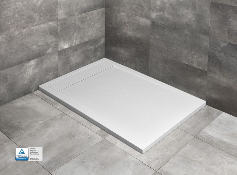 Возможен монтаж вровень с напольной плиткой, на полу, а также на подиуме из кирпичей и строительного раствора. Поверхность таких поддонов можно легко очистить.