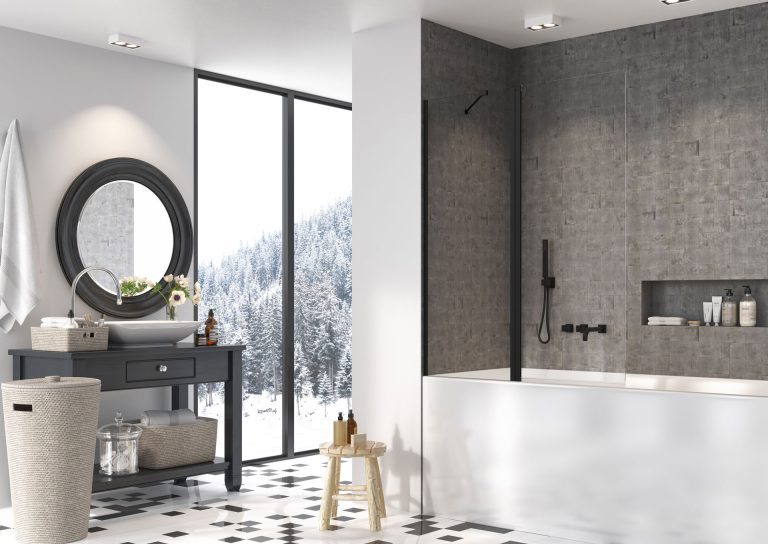 Nes Black — это кабины, двери и шторки на ванну — с фурнитурой в цвете «Black». Дополнительно несколько моделей Nes Black доступно со стеклом Frame/Factory на котором черные полоски изготовлены из устойчивой, керамичной краски.
