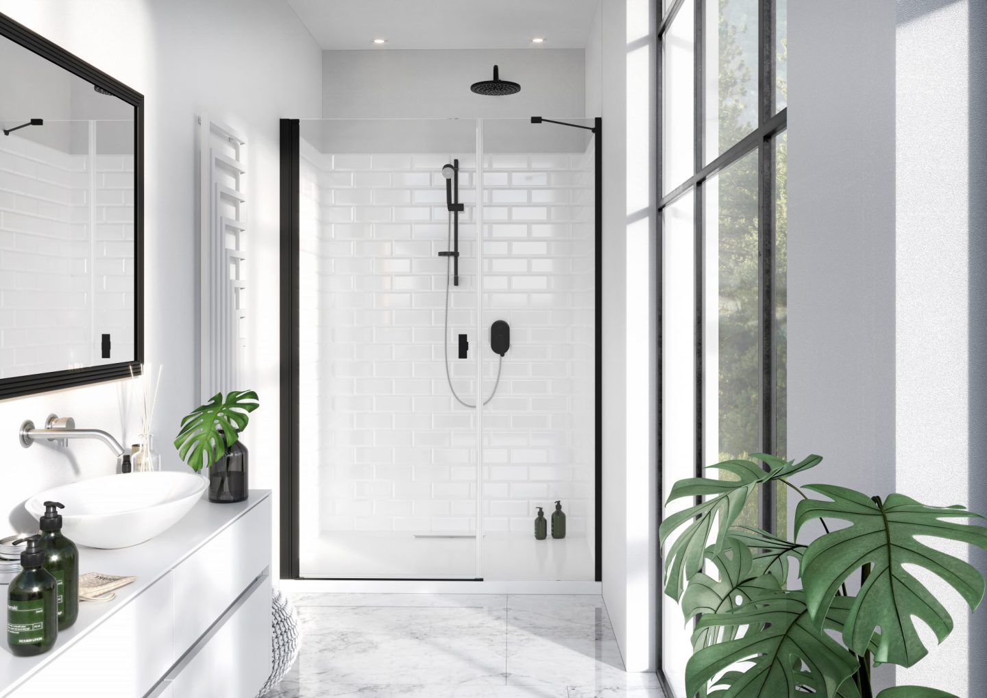 Nes Black — это кабины, двери и шторки на ванну — с фурнитурой в цвете «Black». Дополнительно несколько моделей Nes Black доступно со стеклом Frame/Factory на котором черные полоски изготовлены из устойчивой, керамичной краски.