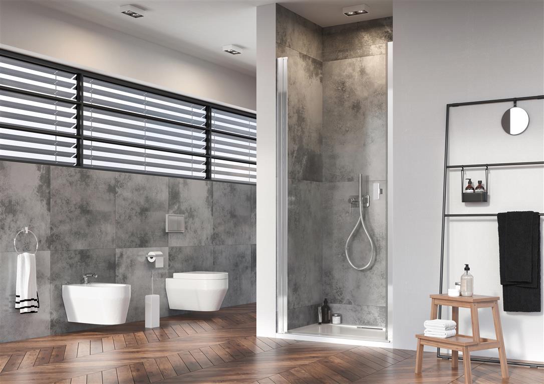 Коллекция Nes это одна из самых универсальных и многообразных коллекций душевых кабин, дверей и шторок. Створки двери в этой коллекции открываются и внутрь и наружу. Профили и фурнитура на выбор либо в цвете «хром», или «Black». Толщина стекла 6 или 8 мм. По стандарту стекло прозрачное или Frame/Factory. Под заказ есть доступны другие варианты цветов стекол.