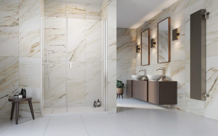 Коллекция Nes это одна из самых универсальных и многообразных коллекций душевых кабин, дверей и шторок. Створки двери в этой коллекции открываются и внутрь и наружу. Профили и фурнитура на выбор либо в цвете «хром», или «Black». Толщина стекла 6 или 8 мм. По стандарту стекло прозрачное или Frame/Factory. Под заказ есть доступны другие варианты цветов стекол.
