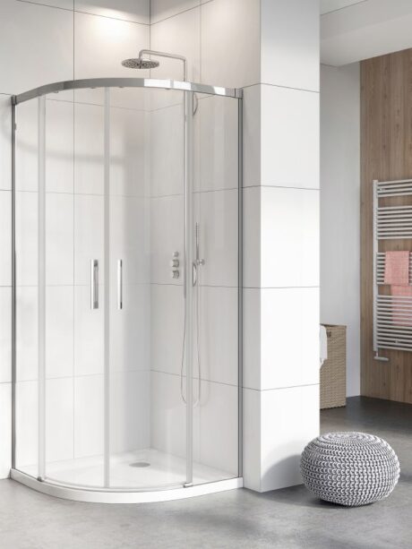 Первая коллекция в стиле настоящего минимализма — двойные ролики спрятаны внутри профилей, на пристенных профилях отсутствуют даже заглушки болтов — в место них маскировочная лента. Все изделия из этой коллекции допускается устанавливать как на поддон так и непосредственно на пол. Кроме того, все изделия допускается устанавливать с порогом или без порога меняя нижний фиксатор (в комплекте).