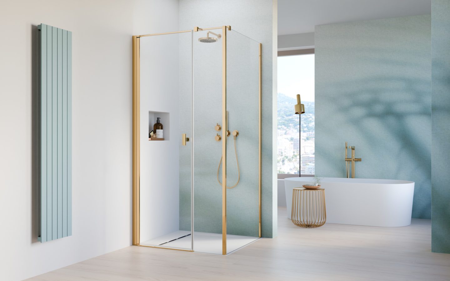 Откройте для себя серию душевых кабин Nes Gold — идеальный выбор для тех, кто ценит элегантность и утончённый стиль. Золотые профили придают интерьеру выразительный, роскошный характер, который отлично сочетается как с классическими, так и с современными ванными комнатами. Благодаря безупречной отделке, современному дизайну и прочной конструкции, серия Nes Gold сочетает эстетику с высокой функциональностью. Это выбор, который преобразит вашу ванную и добавит ей уникального золотого сияния.