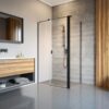 Коллекция Nes это одна из самых универсальных и многообразных коллекций душевых кабин, дверей и шторок. Створки двери в этой коллекции открываются и внутрь и наружу. Профили и фурнитура на выбор либо в цвете «хром», или «Black». Толщина стекла 6 или 8 мм. По стандарту стекло прозрачное или Frame/Factory. Под заказ есть доступны другие варианты цветов стекол.