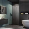Серия Furo характеризуется тонкой изяществом и визуальной легкостью. Мы получили корпус для душа с необычайной элегантностью, легкостью и прозрачностью, отказавшись от верхнего направляющего и устанавливая дверь на роликовые коньки. Ролики были (изнутри стекла, облегчая техническое обслуживание душевого корпуса).