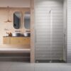 Серия Furo характеризуется тонкой изяществом и визуальной легкостью. Мы получили корпус для душа с необычайной элегантностью, легкостью и прозрачностью, отказавшись от верхнего направляющего и устанавливая дверь на роликовые коньки. Ролики были (изнутри стекла, облегчая техническое обслуживание душевого корпуса).